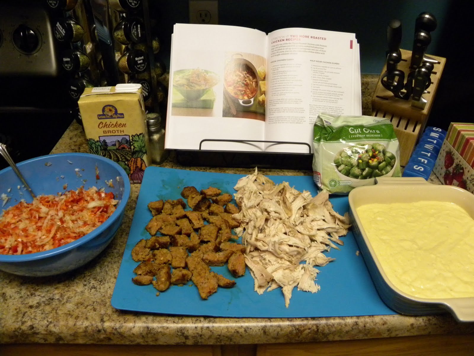 3.) For the tomatoes, it called for 2 28oz cans of whole peeled tomatoes but I would suggest using just regular diced tomatoes-then you dont have to cut them up. So you add in two cans of whichever tomatoes you prefer along with the juices. Add in 2 tbsp molasses, and 1 cup of water. Season with salt for taste. Bring to a boil, and cover for 30 minutes.